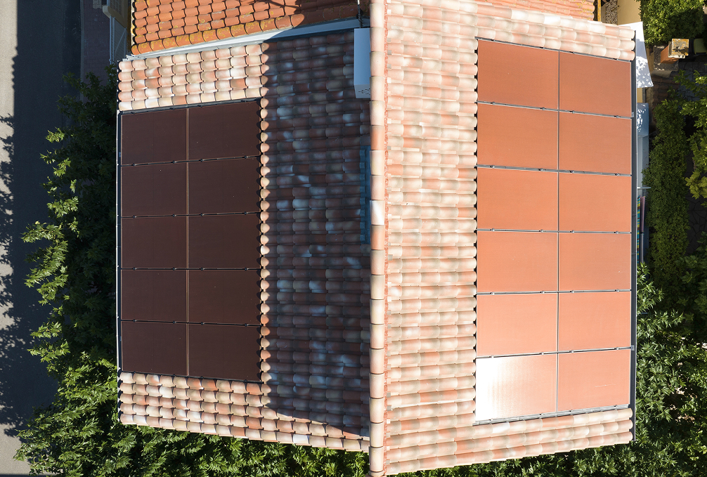 Sistema de fijación para integrar paneles fotovoltaicos en cubiertas inclinadas con cualquier tipo de teja cerámica. Una solución segura y accesible para edificios residenciales, comerciales, públicos, agrícolas e industriales.